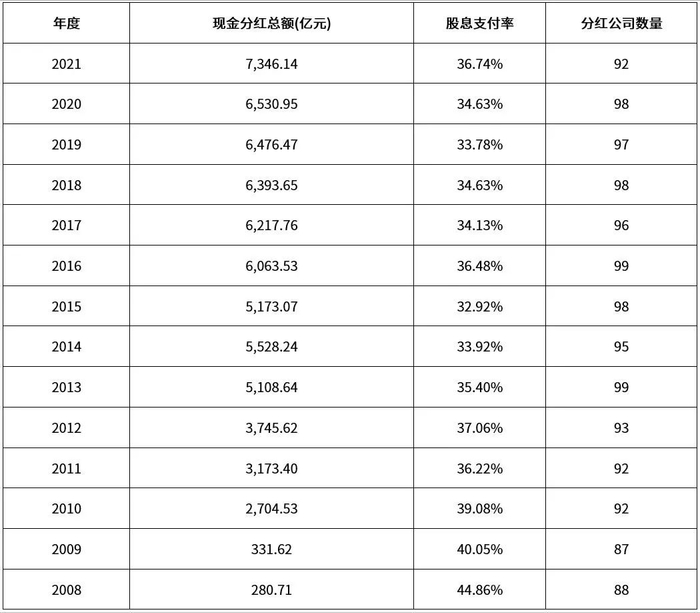 中证红利指数历年分红情况