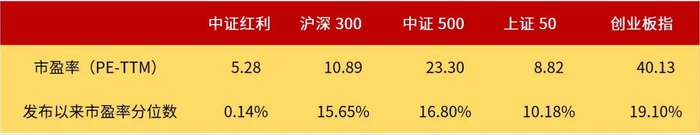 从横向看,观测各指数发布以来的市盈率和分位数,中证红利指数估值水平皆远低于沪深300、上证50、创业板指、中证500等主流宽基指数。