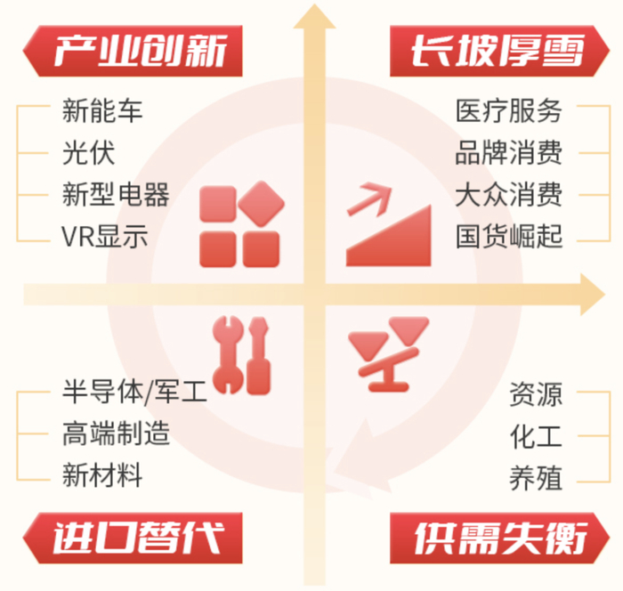 第一类是产业创新类,通过底层技术创新,能够颠覆竞争对手,满足产业长期发展方向的领域;