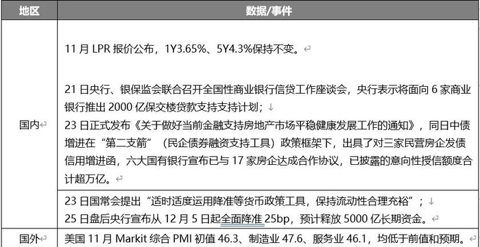国内11月LPR报价公布,1Y3.65%、5Y4.3%保持不变。