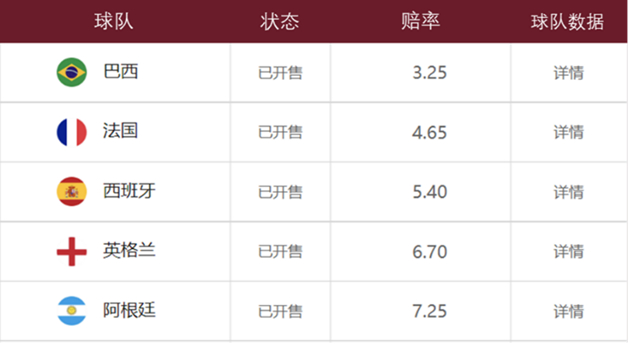 图二:世界杯冠军体彩赔率