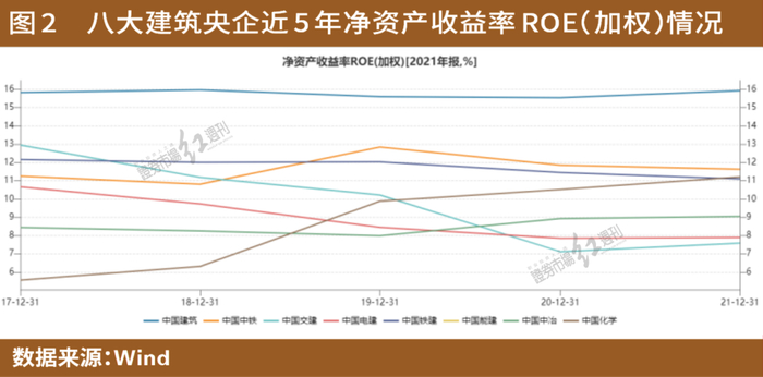 华泰证券研究所建筑建材首席研究员方晏荷向《红周刊》表示,“建筑央企的业绩增长一直相对比较稳健,2019~2021年八家建筑央企营业收入复合增长率均在双位数以上,平均增速15%;归母净利润平均复合增速10%。其中,中国铁建、中国中铁、中国建筑、中国化学均保持了两位数以上复合增长,三年复合增速分别为11%、17%、10%、34%。根据八家建筑央企在手订单和新签订单来看,我们预计他们今年及未来两年的业绩增速仍将继续保持稳健增长。”