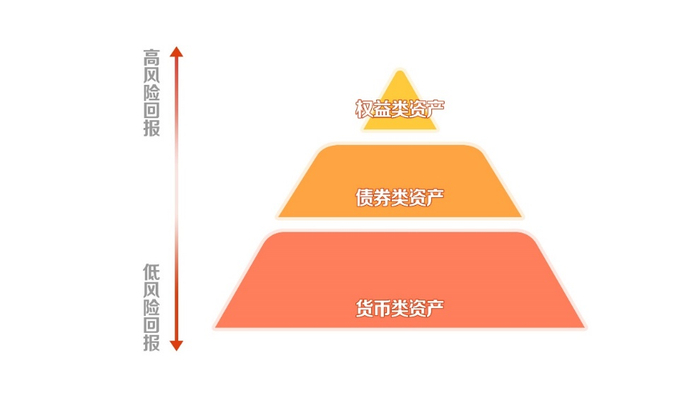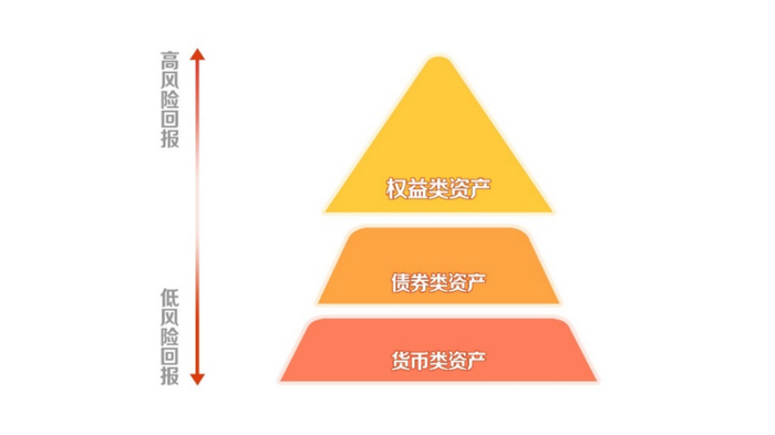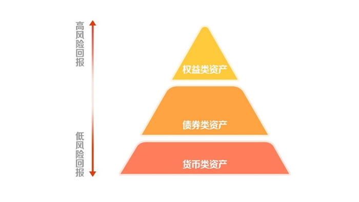 按风险收益从低到高,我们的资产可划分为三个层级组成的金字塔:货币类资产是塔底的“安全层”,提供足够流动性,相当于绿茵场上的后卫,打牢防守基础;债券类资产是塔中的“稳固层”,进可升值退可守成,在不同市场中灵活转换攻防节奏;权益类资产是塔尖的“增值层”,高风险与高收益并存,进攻能力抢眼。