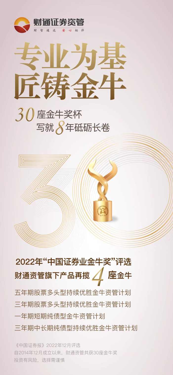 8年30座金牛奖,财通证券资管再获四座“金牛”奖
