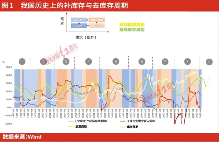 而市场真实底部的出现则同样需要“去库存”周期的“就位”。2022年4月时,我们判断市场将阶段性反弹,但是反弹结束后会出现二次触底,呈现“进二退一”的格局。这背后的深层原因在于,虽然4、5月是经济数字上的绝对底部,但从库存周期来看,企业还在被动累库,并不构成“见底”的库存条件。