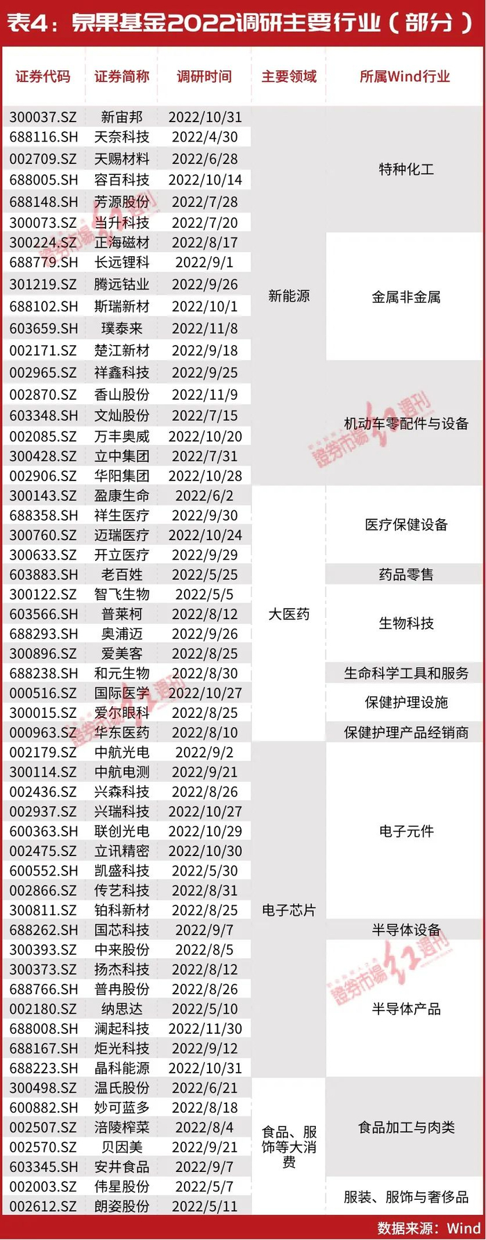 从泉果基金2022年的调研重点不难看出,其关注的侧重点也均围绕其表示将重点关注的方向。那么,哪些标的将有成为重点建仓目标呢?我们对此也将持续关注。