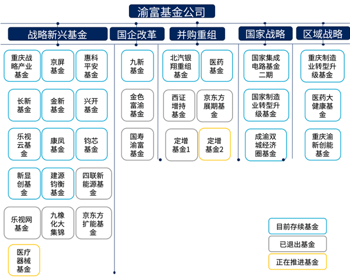 渝富基金作为重庆重要的战略新兴产业投资平台和国有资本运作平台,投资了“一芯两屏三新能源汽车”等全市重大战略性新兴产业项目,为重庆市科技创新领域发展打下坚实基础。