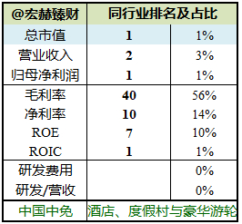 中国中免 当前时点位居行业百分位参考:总市值1%,毛利率56%;投入资本回报率ROIC:1%;净资产收益率ROE:10%。该行业竞争激烈,获利较难,但中国中免是神一样的存在。