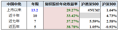 中国中免 自上市以来13.2年的光阴里,市值由150亿走至当前的4783亿。市值年均复利增长率为29.88%,复权股价年化回报率为29.27%,同期沪深300指数年化回报率为1.64%。