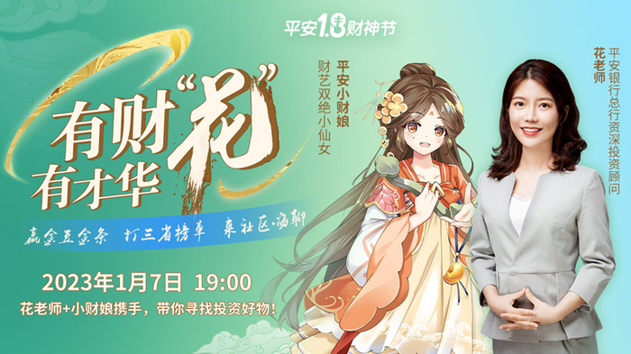 作为本次“财神节”线上宣传的一部分,平安银行结合“专业财安稳”“省心、省时又省钱”的活动主题,并结合自身业务,在1月7日晚推出题为《花老师+小财娘携手,寻找投资好物!》的直播,通过平安口袋银行App和平安银行视频号双平台播出。截至目前,共计吸引超21万人次收看,与直播相关的有奖话题“2023年,你有哪些‘省钱、省时又省钱’的个人财富妙招?”,在口袋社区内吸引了近500人讨论分享,互动积极踊跃。