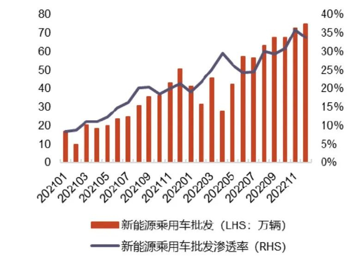 中汽协预计,2023年国内新能源汽车销量有望达900万辆级别,同比+35%,中国新能源汽车产业链有望充分受益于电动车渗透率不断提升的大趋势。光大证券认为,2022年销量符合预期,市场最悲观预期已过,商务部重申汽车消费重要性,板块修复可期。