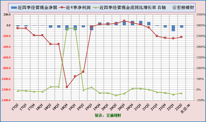 近四季经营性现金流净额与归母净利润比较