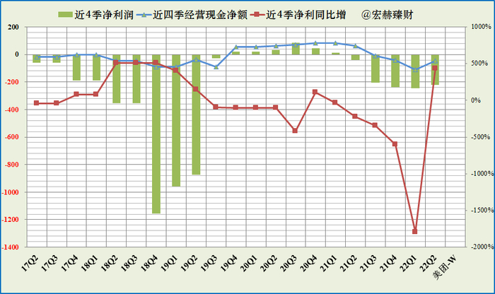 蓝色折线持续在绿色柱图上边及以上显示净利润含金量高。