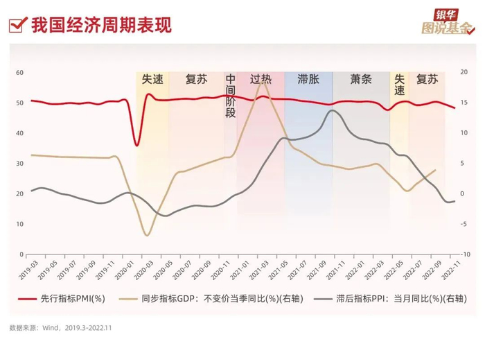6、宏观经济周期作为市场运行的大背景,在普林格经济周期的不同阶段,各类投资品也会呈现出不同的表现及周期轮回。