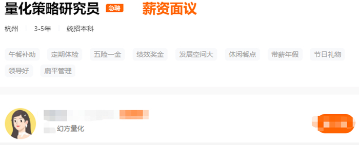 量化巨头幻方资管通过第三方平台,对外招聘量化策略研究员,并标注为“急聘”的状态。