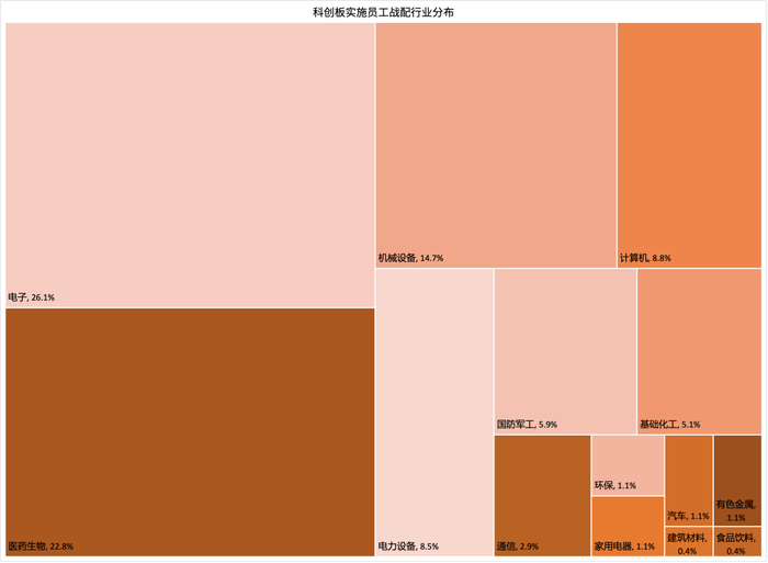 在实施“员工战略配售”的企业中,双创板集中于电子、医药生物、机械设备行业,此类行业往往技术壁垒坚固、受国家政策扶持,因此企业往往能够通过实施“员工战略配售”来有效激励高科技人才,从而推动公司技术持续发展。