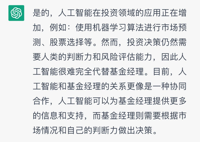Q:那投资方面,人工智能是否有广泛的应用?你认为未来人工智能可以代替基金经理去做一些投资决策吗?
