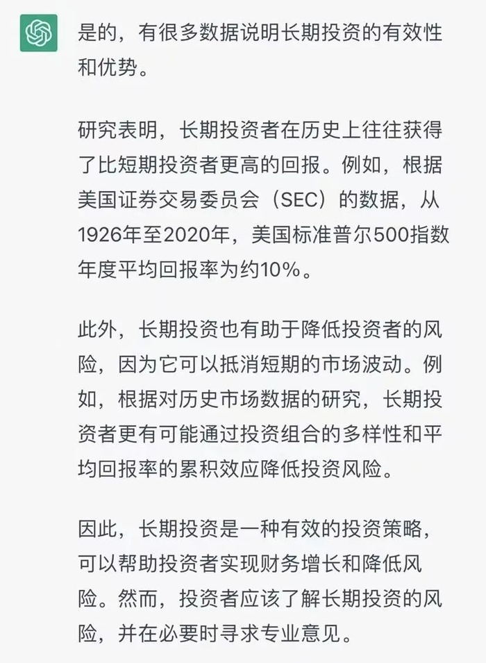 Q:说到投资,我们一直会谈到长期投资,你觉得长期投资有必要吗?