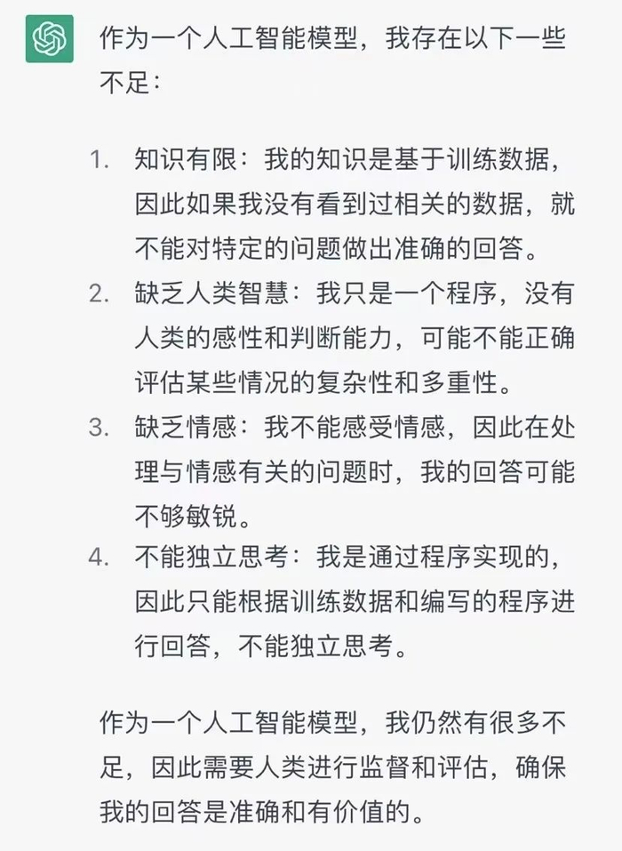 开发公司OpenAI也在其官网总结ChatGPT目前的局限性: