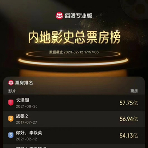根据猫眼专业版,截至2月12日17时57分06秒,《流浪地球2》的累计票房达到36.52亿,成功超越《红海行动》,成为中国内地影史票房榜的第十名。