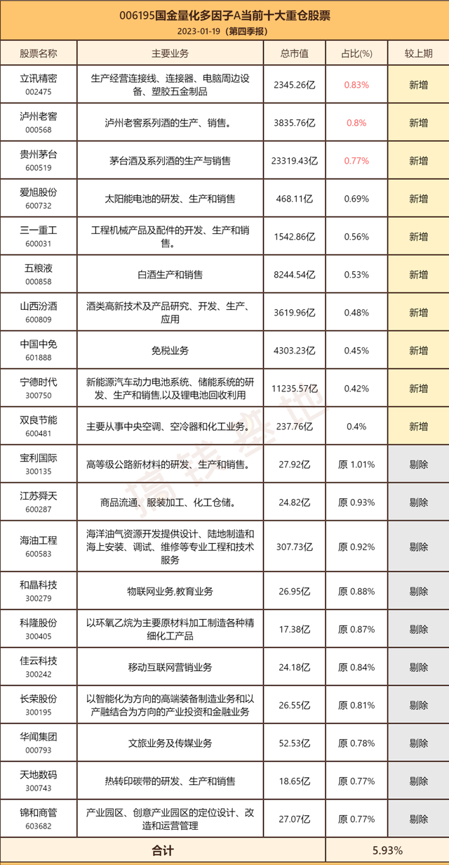 下面我们就来看一看国金量化多因子A去年四季度的调仓情况!