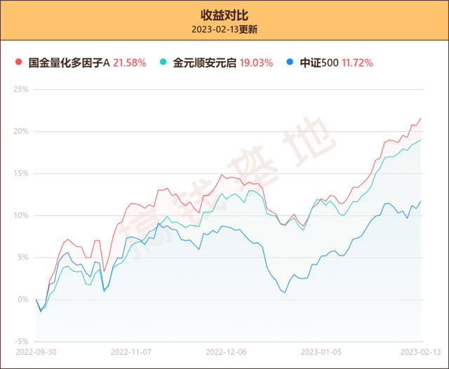 去年四季度以来,国金量化多因子大涨21.58%,不仅跑赢中证500,也战胜了金元顺安元启!