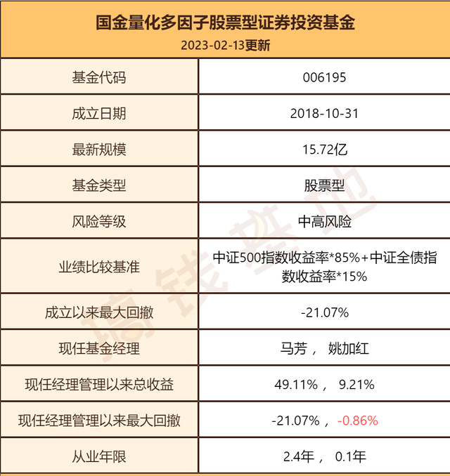 这个平替指的是由马芳管理的国金量化多因子A(006195)。
