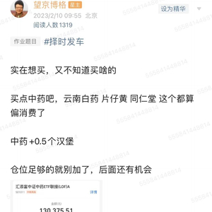 博格回答:“涨了就是买少了,跌了就是买多,目前持仓信创盈利10%+了,大家实在想买,又不知道买啥的就买点中药吧,结果博格上周加仓5000块钱中药,没想最近持续上涨。” PS:要是早知道中药持续上涨,我就多买点了。