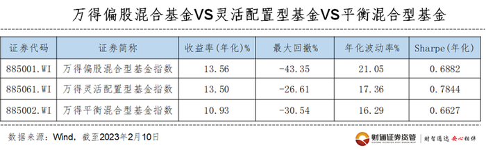 从上表对比中不难发现,与股票占比较高的偏股混合型基金指数相比,股债配置更为机动灵活的灵活配置型基金指数年化收益相差不大,但波动和持有体验更好;与股债配置比例相对固定的平衡混合型基金指数相比,灵活配置型基金指数在收益与风险方面均有更好地表现。可见,若能灵活运用股债策略,长期来看是可以创造更高收益并降低波动的。