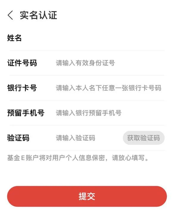 5、目前基金E账户仅支持投资者使用身份证办理实名认证。使用其他证件开立的基金账户及相关公募基金产品份额持有情况暂无法通过基金E账户进行。