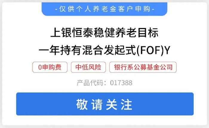 风险提示:基金有风险,投资需谨慎。本材料中的信息或所表达的意见仅供参考,并不构成任何投资建议。最终个人养老金实施政策以相关监管机构发布的最新文件为准。基金管理人承诺以诚实信用、勤勉尽职的原则管理和运用基金资产,但不保证基金本金不受损失,不保证基金一定盈利,也不保证最低收益。投资人购买基金时应详细阅读基金的基金合同、招募说明书与基金产品资料概要等法律文件,充分认识本基金的风险收益特征和产品特性,并根据自身的投资目标、投资期限、投资经验、资产状况等因素选择与自身风险承受能力相匹配的产品。本基金为养老目标基金,产品“养老”的名称不代表收益保障或其他任何形式的收益承诺,产品不保本,可能发生亏损。请您仔细阅读专门风险揭示书,确认了解产品特征。本基金每份基金份额的最短持有期限为一年。本基金每份基金份额在其最短持有期到期日(含该日)起,基金份额持有人方可就该基金份额提出赎回申请。因此,对于基金份额持有人而言,存在投资本基金后,一年内无法赎回的风险。Y类份额是本基金针对个人养老金投资基金业务单独设立的基金份额类别,Y类基金份额的申赎安排、资金账户管理等事项还应同时遵守国家关于个人养老金账户管理的相关规定,开放申购时间由管理人另行公告。投资于Y类份额的特有风险包括基金在运作过程中可能被移出个人养老金可投基金名录,导致投资者无法继续申购的风险。本基金为R2风险等级产品,适合C2-C5风险等级的投资者,产品代销机构如对产品风险等级及投资者风险承受能力等级有其他自行评定结果及匹配规则,以代销机构结果为准。基金管理人与股东之间实行业务隔离制度,股东并不直接参与基金财产的投资运作。