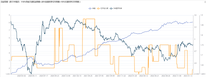 策略信号方面,势能和动能角度的多数信号仍不支持做多,但值得注意的是本周5Y利率引导模型短期转向看多,自动驾驶模型看好1-3年指数,但杠杆后久期由前周的1.23提升至1.85,杠杆率水平也由前周的80%提升至120%,指向短期的看空情绪或有所弱化。