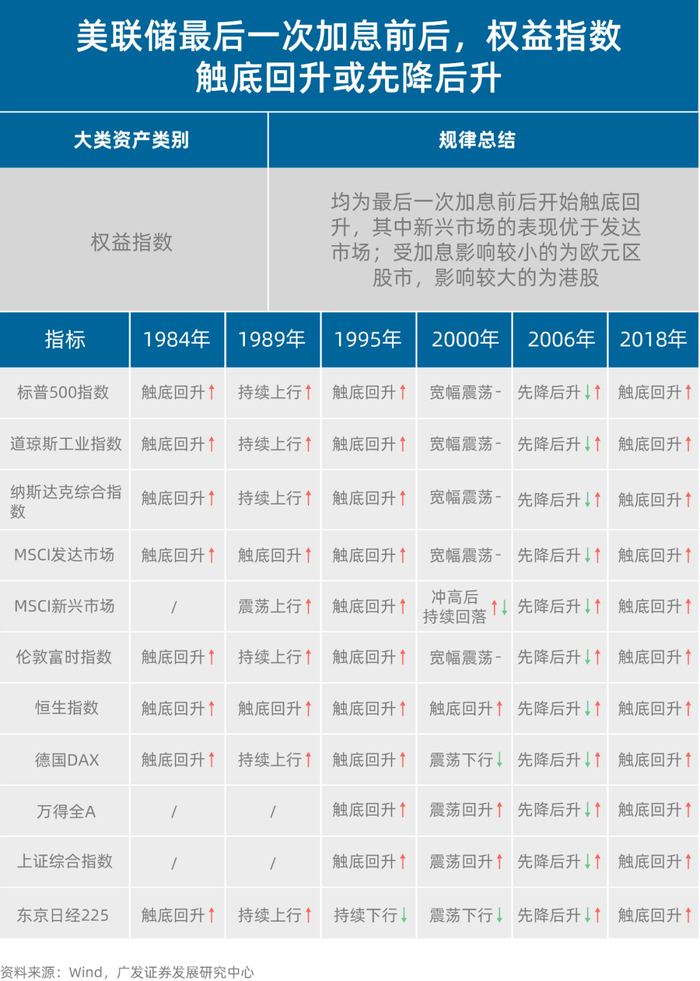 美联储加息尾声时诸多大类资产具有显著规律: