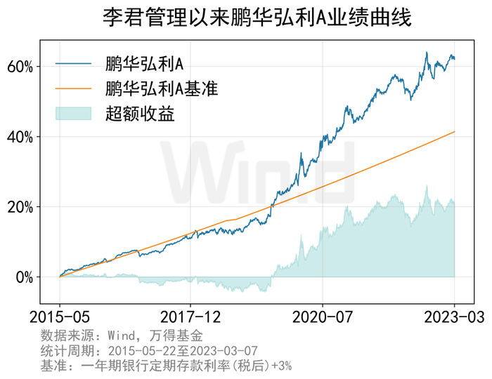 李君在2015年5月22日接手了鹏华弘利A、鹏华弘润A两只基金,管理至今,两只基金业绩走势相似。