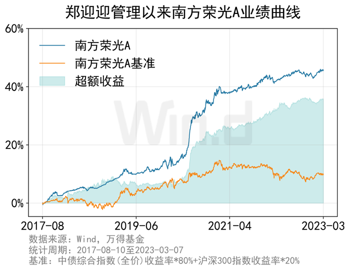 郑迎迎于2017年8月管理南方荣光A,2018年准确把握住债市投资机会,取得了超5%的收益;2020年捕捉到A股反弹机会,获得近20%的收益。