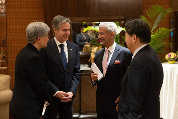 ▲3月3日,G20外长会于新德里落幕后,美国、印度、日本、澳大利亚四国借机举办了一场“四边机制”(QUAD)外长会议。