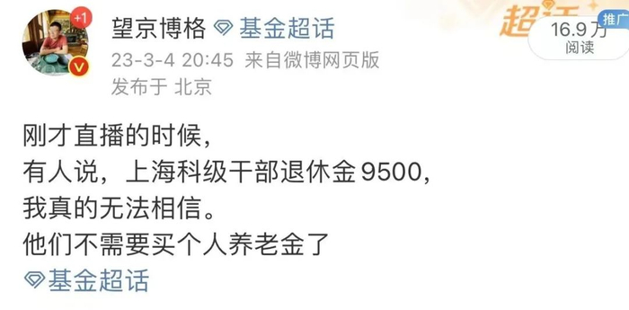 “我家一个亲戚,上海科级干部退休金每月9500块钱!”