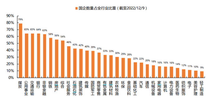 国企在关系国家安全、国家经济命脉的行业中占比高。国企在能源、上游工业品、航空航天、金融等国家安全产业中的占比较高,承担更多国家安全方面的责任,未来会受到更多重视。 |