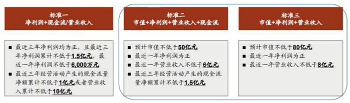 财务标准,过往核准制下,只有一套净利润+现金流/营业收入的标准;而在注册制下,预计市值这一指标被引入,历史上存在优质潜力企业、战略新兴产业,由于利润或现金流尚未达标,在国内上市困难从而集体赴海外上市的情况。注册制改革后,这类企业也有上市机会。