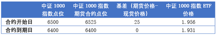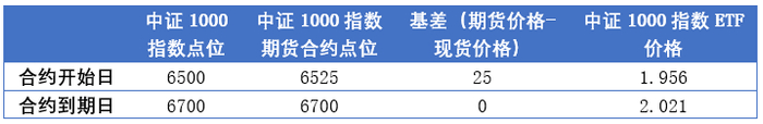 假设市场上涨如下表所示,不考虑交易费用等情况,到期时,中证1000指数ETF多头的收益是3.3%(即2.021÷1.956-1=3.3%),中证1000股指期货空头的亏损是2.7%(即-(6700÷6525-1)=-2.7%),此时,策略可以获取套利收益。