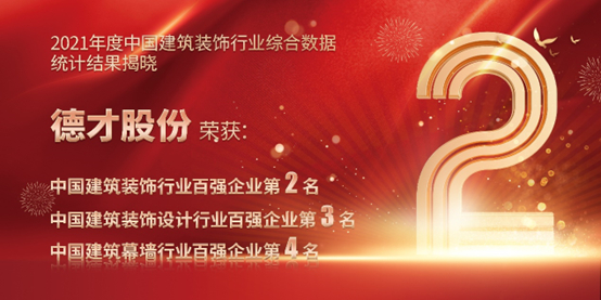 德才股份连续荣登中国建筑装饰行业百强企业第2名