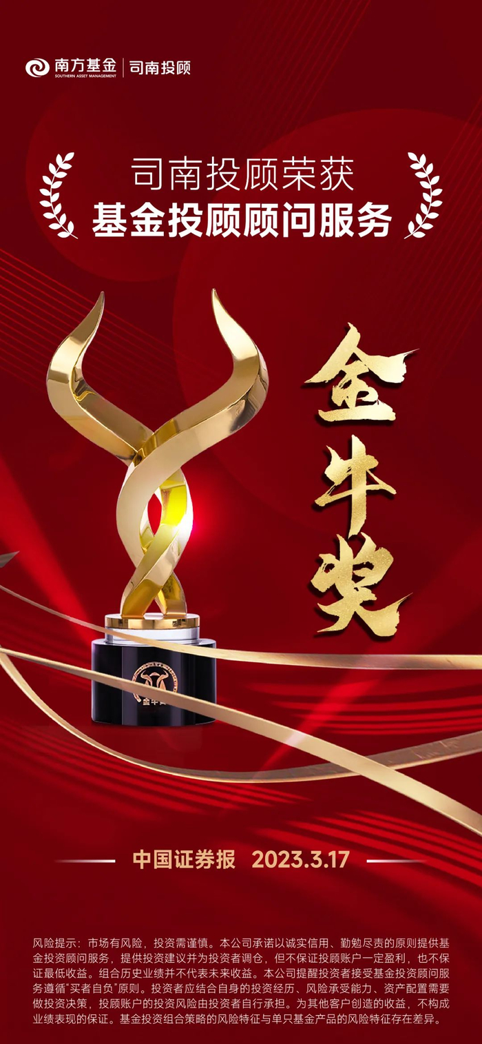 3月17日,由中国证券报主办的首届中国基金投顾金牛奖评选活动结果揭晓,南方基金司南投顾荣获“基金投顾顾问服务金牛奖”。