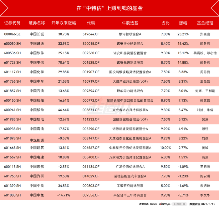 在暴走的中字头板块背后,我们依然能找到一些基金的身影。