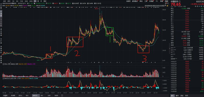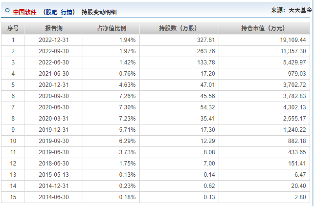 我们再来看一只科技股的案例,第4大重仓股中国软件是周海栋的挚爱,从历史持仓数据可以看到他多次布局(上图红框),尤其是在最近的一次相当精彩,在2022年2季度股价暴跌之后果断抄底,随后享受了一轮200%左右的涨幅。