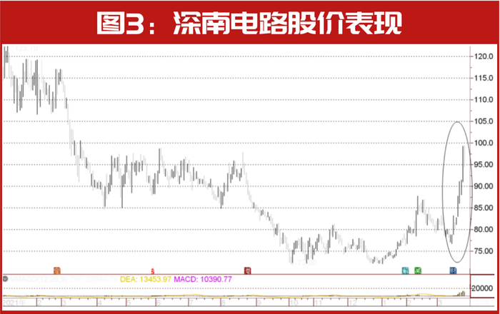 而在深南电路同步披露的2022年四季度前十大流通股股东持仓中,千亿私募淡水泉2只基金赫然在列,淡水泉平衡5期持仓266.87万股,位列第6大流通股股东;淡水泉全球成长1期持仓200.86万股,位列第十大流通股股东。截至2022年四季度末,两只基金合计持仓深南电路市值达3.3亿元,深南电路股价今年以来累计上涨33%(见图3),若未减持,持仓市值将已增加1个亿的“小目标”。