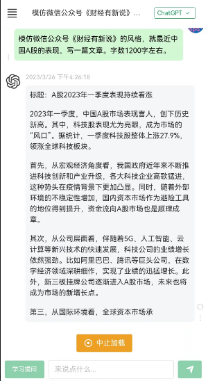 CHATGTP对话窗又转了一会,又弹出一篇小作文。