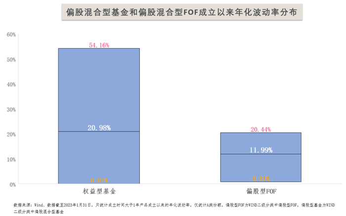 曾经有第三方做过统计,自2019年初至今年1月31日,全市场2000多只偏股混合型基金成立以来的平均年化波动率为20.98%,而偏股混合型FOF同期平均年化波动率仅11.99%。而且,超过95%的偏股型FOF成立以来年化波动率均低于20%。
