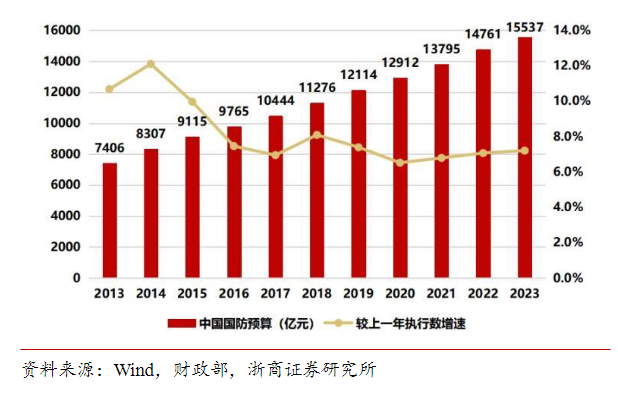 3月20日国资委党委召开扩大会议,强调“要以更大力度鼓励支持中央军工企业做强做优做大,指导中央企业立足自身所能积极支持国防军队建设,助力实现国家战略能力最大化”。同时,今年的《政府工作报告》中也提出,今年我国国防预算约为15537亿元人民币,同比增长7.2%,增速创近4年新高,且连续多年保持增长。