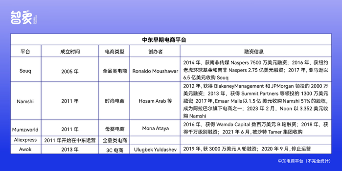 在垂直领域,从2017-2019年,Namshi、Boutiqaat、Wadi、Awok、Mumzworld先后获得融资或被收购。