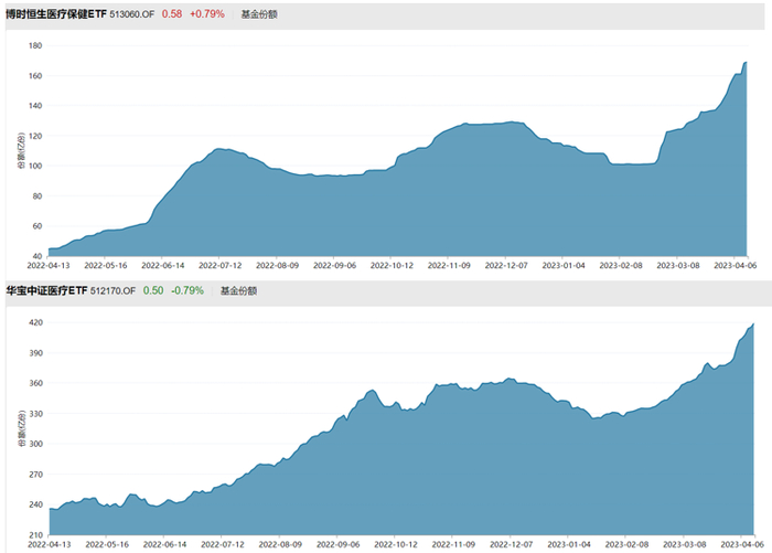 例如,恒生医疗、中证医疗相关的ETF最近规模在持续上涨。